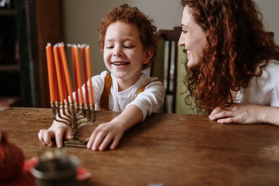 The story highlights the spirit of Hanukkah, a festival celebrating perseverance, faith, and the triumph of light over darkness. Hershel’s bravery mirrors the historical defeat of oppression, symbolized by the Miracle of the Oil. The menorah’s glowing light embodies hope and resilience, reminding readers of Hanukkah’s core values. This timeless tale reinforces the holiday’s significance, blending tradition with universal themes of standing against darkness and embracing the power of faith and unity.
